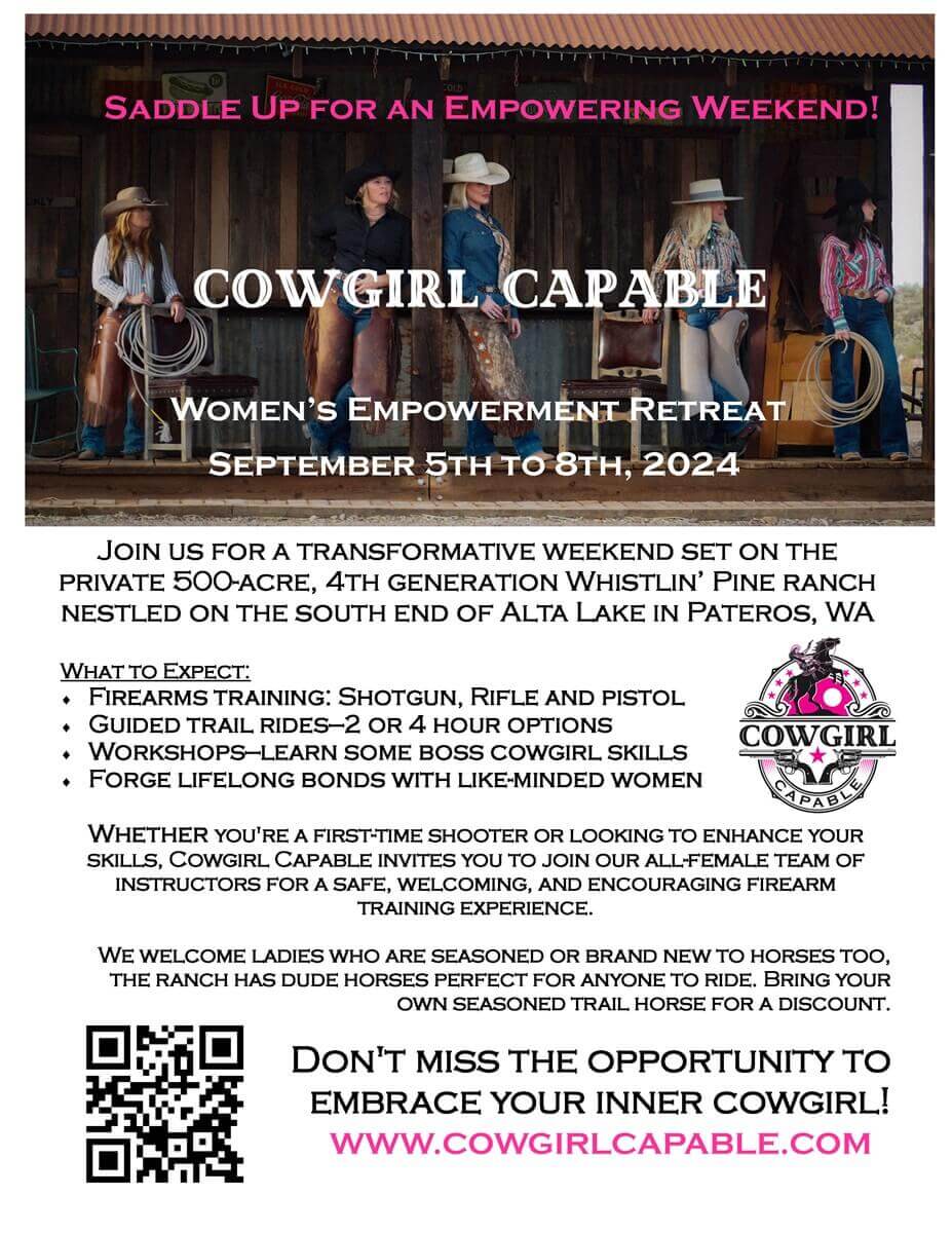 Join Cowgirl Capable for a transformative weekend set on the private 500-acre, 4th generation Whistlin’ Pine Ranch nestled on the south end of Alta Lake in Pateros, WA