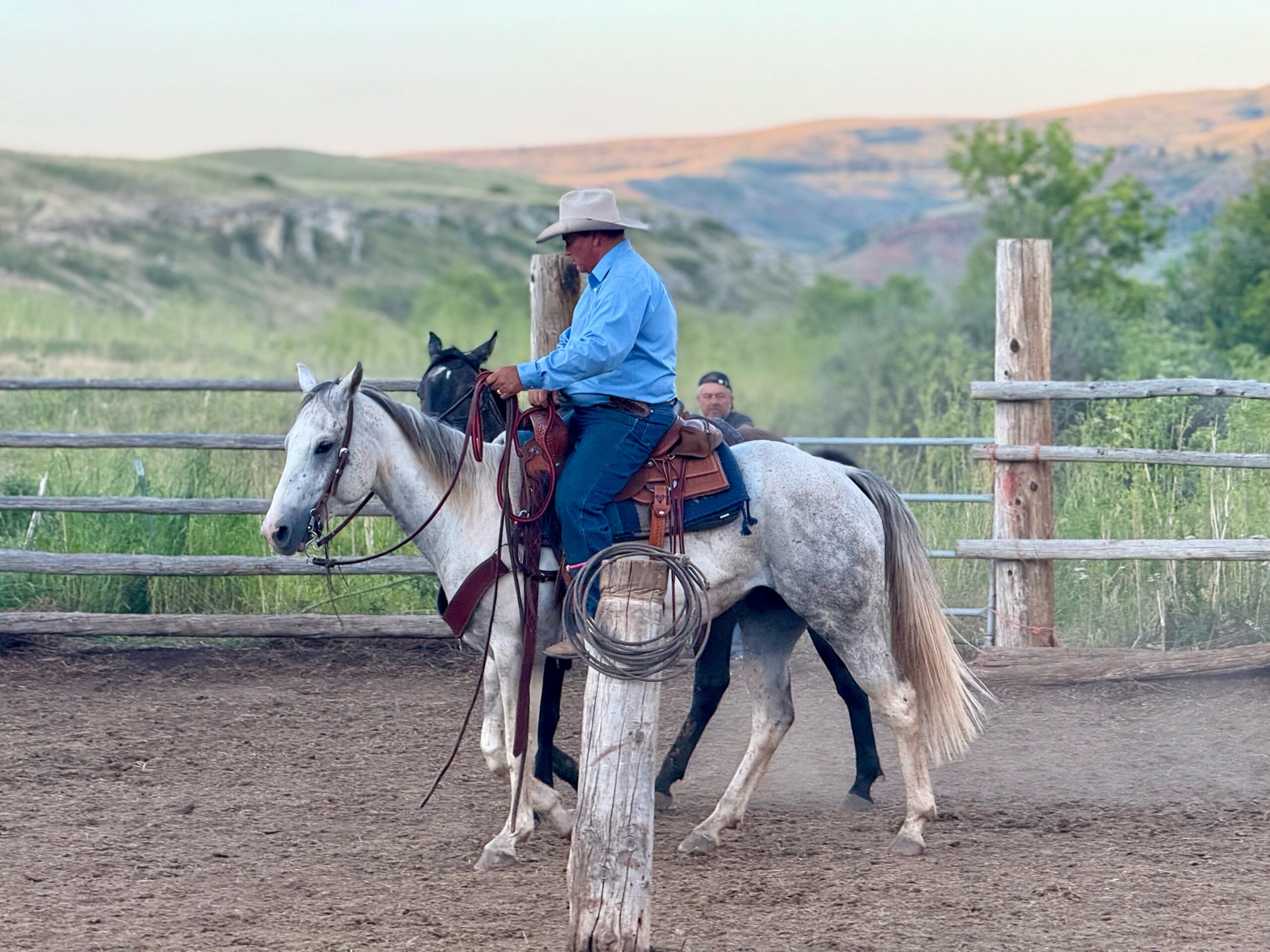 Bojangles and I have had more adventures together than you can shake a stick at. I have used him to start colts, and his ability to stay calm under pressure is amazing. I have roped more calves at brandings with Bojangles than I could ever count. He is great to doctor on in the pasture and is an all-around good ranch horse. I have started mounted shooting off of him, and he loves obstacle courses, so if you are looking for a partner for either of those events, Bojangles is well on his way in both. He has a great stop and a nice spin with good flying lead changes. He will also lie down on cue so you can get on and off with ease. Ridden by Ken McNabb. FMI Contact Ken McNabb at 307-254-7260 | mcnabbdeedee@gmail.com