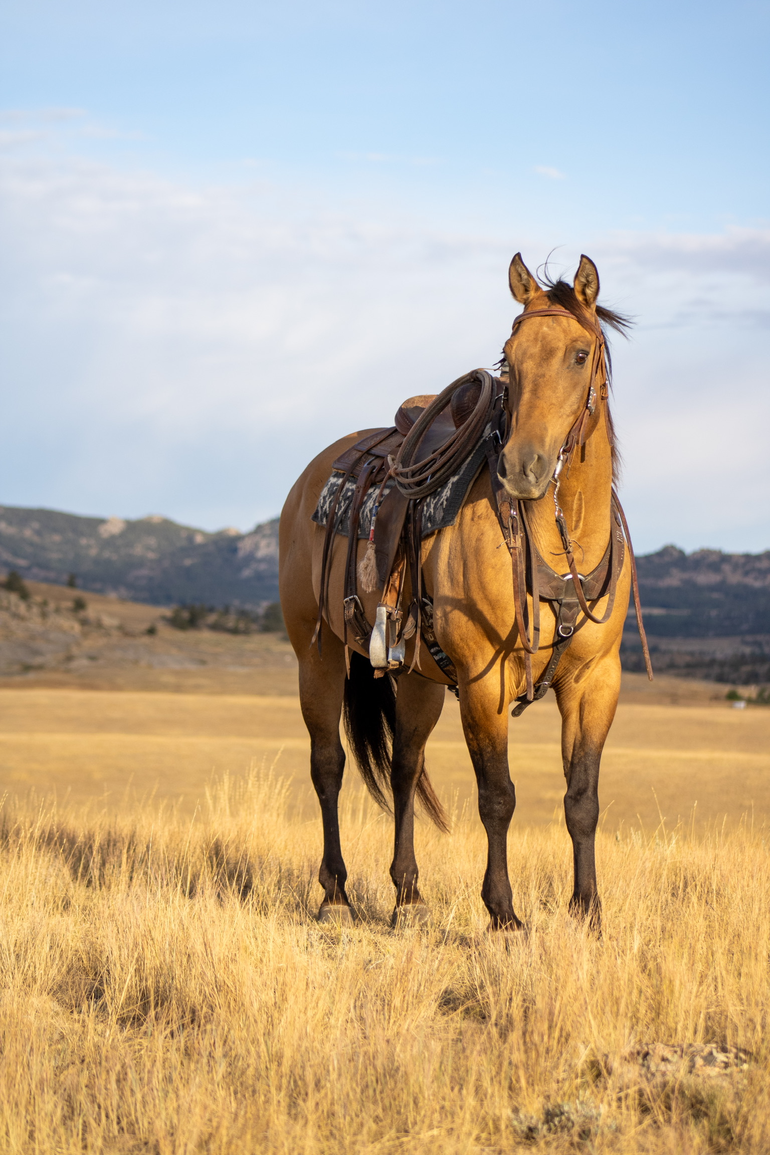 Dutch- you won’t find a horse that has been exposed to more real-world situations than him. He has been a mount for Rodeo Queens at the Cody Stampede, as well as in the Fourth of July Cody parade. He’s been used to drag calves in the branding pen and for all other forms of ranch work. He has given kids their first rides and has been used for riders with physical impairments. He will rate to his rider and take perfect care of them. Put him on the trail with a low-confidence rider, and they’ll come back hours later with a big smile on their face. I truly love to ride this horse. We have covered a lot of big, tough country, and he takes it all in stride. Dutch is willing to move at any speed I ask for. If we need to cover ground, he’s more than capable, yet he’ll drop right back down to a nice, slow walk. This is truly a horse the entire family will love. Ridden by Donald Archer. FMI Ken McNabb at 307-254-7260 | mcnabbdeedee@gmail.com