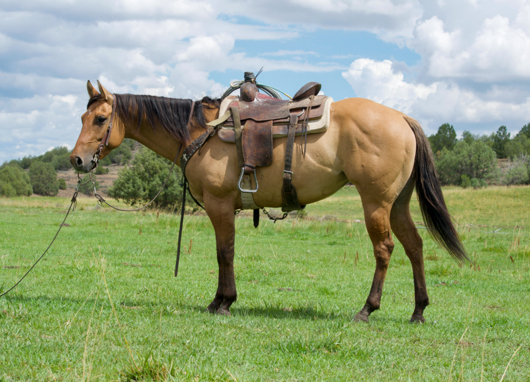This 5-year-old dun mare is as ranchy, cowy, and as tough as they come. Prairie has the stamina of three horses and a heart that wants to please. She loves long days chasing cattle in the mountains, working in the branding pen, and exploring wide-open spaces, while also having a pretty stop, clean spins, and loping effortless circles in the arena. This mare has been just about everywhere, from Colorado to Missouri, doing all things imaginable. From packing into hunting camps to horse retreats and even obstacle course shows she’s taken it all in stride. She is the most versatile and honest horse around and will give 100% for her rider. Ridden by Kacey and Justine Chandler. FMI Ken McNabb at 307-254-7260 | mcnabbdeedee@gmail.com