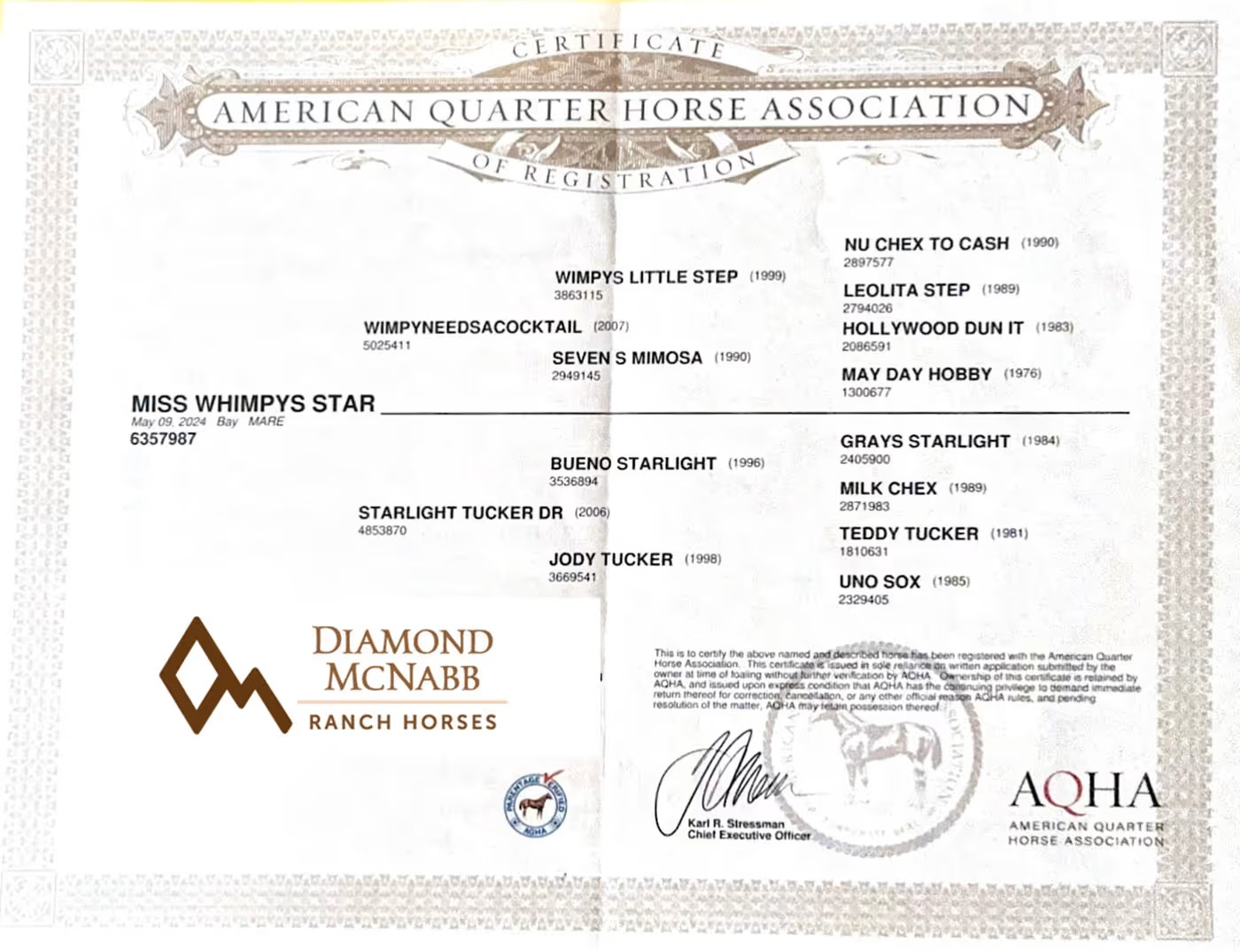 - Registry: AQHA