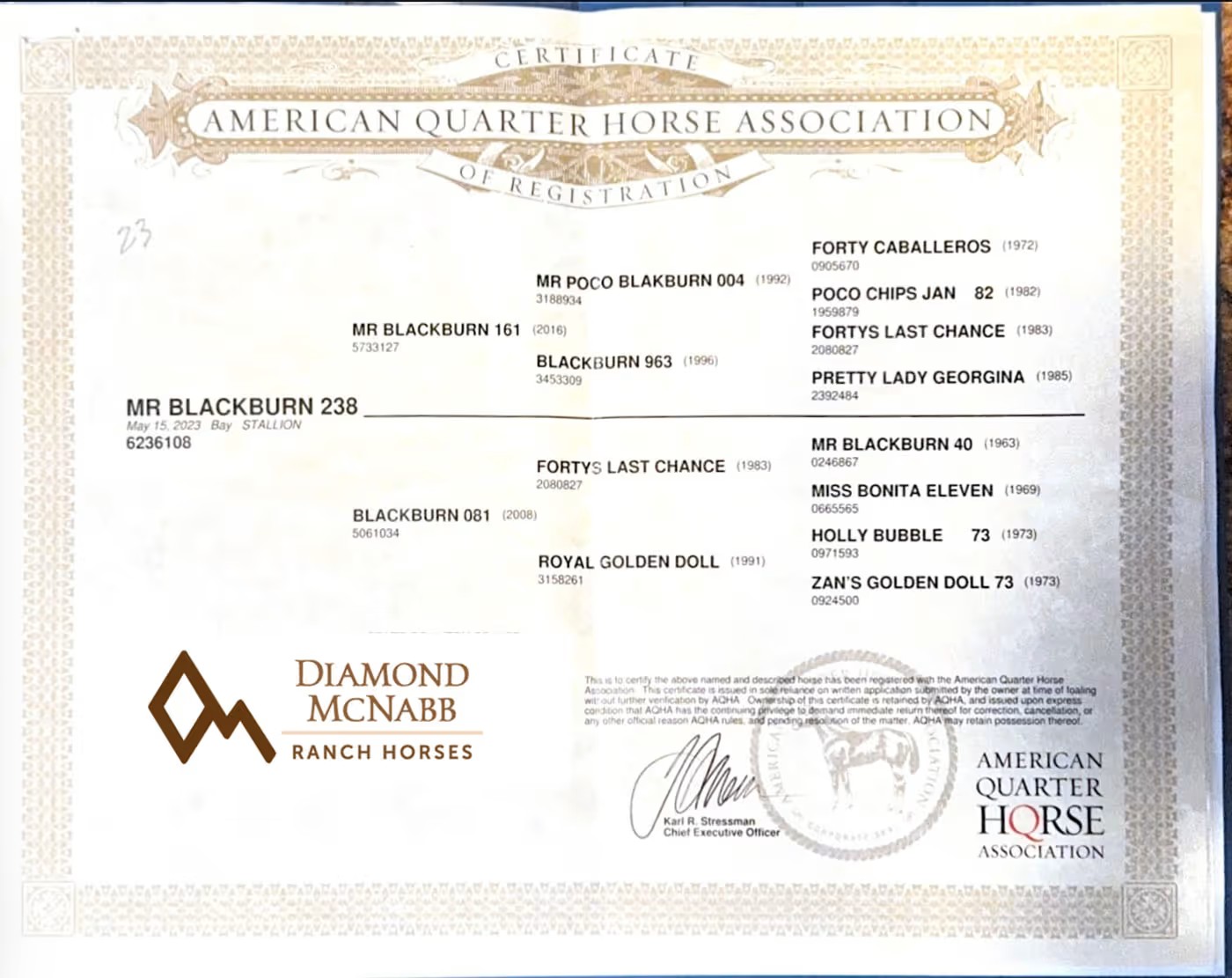- Registry: AQHA