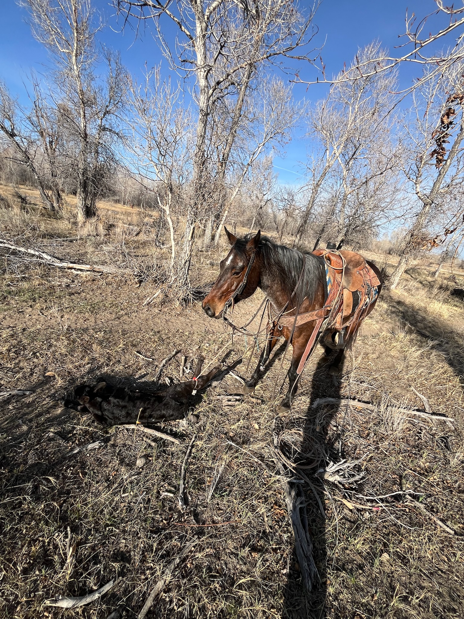 Reba is a user-friendly mare that doesn’t have a mean bone in her body. She is a pleasant ride down the trail or to follow cows around on. Reba crosses water and downed timber easily and carefully. We have used her to trail and move cows from pasture to pasture, and she has been used to doctor and tag cattle. She also has drug calves on a sled to the barn in the dark. Everyone at the ranch has ridden her, from very inexperienced riders to those of us who ride daily. She is gentle but has plenty of go and life to match. Reba has a smooth traveling walk and a nice long trot. She would make a great trail partner or a fun ride for weekend playdays. Ridden by Brac Walker. FMI Ken McNabb at 307-254-7260 | mcnabbdeedee@gmail.com