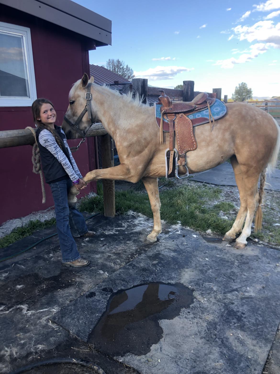 13 hand palomino, 4 yrs, rides and works as a team under harness, great work ethic and ground manners