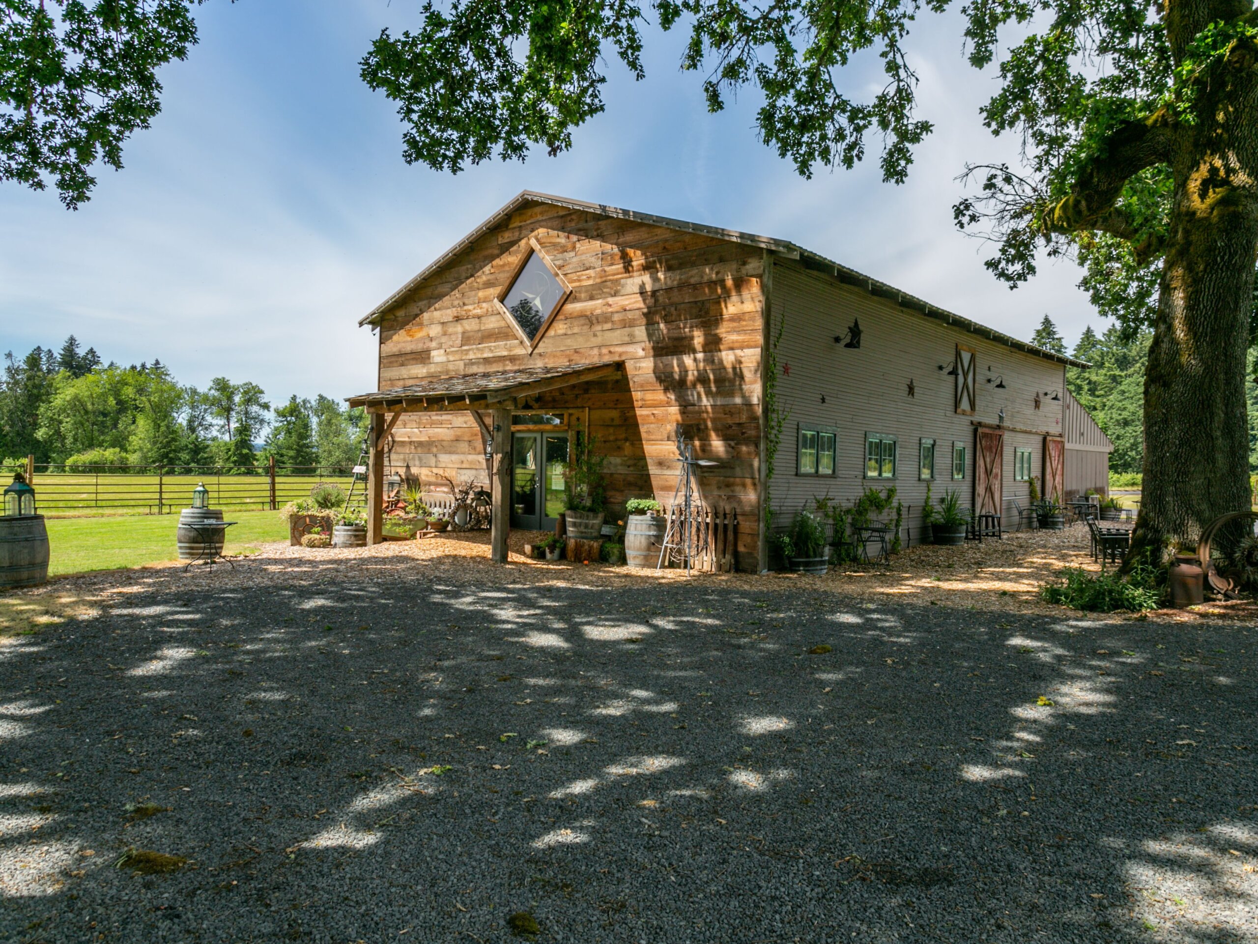 Catch lightning in a bottle with this once-in-a-lifetime opportunity to own a Washington County icon. Scotch Church Road Vineyard is a compendium of stories told by surfaces & spaces, starting with a meticulously restored 1964 farmhouse built to feature bricks reclaimed from the old Portland Laundry tower. Your main level is an entertainer’s dream, with a kitchen built for a foodie, a living room opening to expansive outdoor spaces and an elegant master suite. A loft & full bath complement 3 quiet bedrooms upstairs while the patio level has separate living quarters with exterior entrance to great room, kitchen, bedroom, full bath & laundry. The grounds surrounding the home make for exquisite open-air enjoyment, with deck above, patio below, hot tub, fire-pit & groomed planting areas. Consider the larger features of the 15+ acre property: EVENTS~ With an intimate gathering hall that doubles as a tasting room, 2 ceremonial arches & outdoor stage, SCRV is at the heart of some of the area’s legendary memories, from weddings to corporate functions to kick-out-the-jams annual gatherings. VINICULTURE~ A vineyard of 3 varietals spreads row by beautiful row across 7 acres, set to operate in turn-key fashion as income-producing or for the private enjoyment of the buyer.. EQUESTRIAN~ A shop with 3-phase 220-volt power connects to a barn with 3 generous stalls & room for more. This building anchors a tableau of fenced & cross-fenced wooded pastureland for on-site riding, with 4 indoor riding arenas less than ¼ mile away. INTRINSICS~ In a world where access to water becomes ever-more precious and privacy becomes ever-more rare, this multi-faceted gem is served by two productive wells with a front door nearly 1,000 paved feet from the nearest road. Here, with an easy commute to Intel’s fab triangle & Nike’s campus, is a generational home for all seasons – Plant your family’s flag at Scotch Church Road Vineyard!