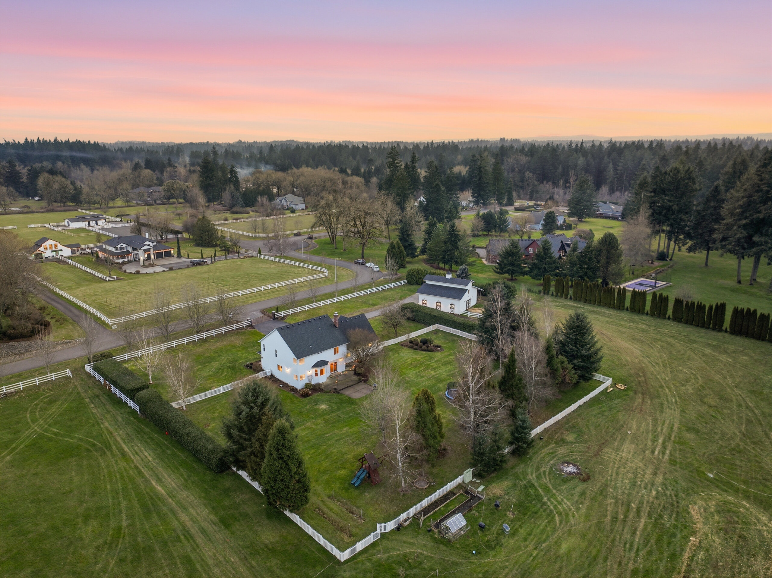 An exceptional and rarely available offering in the prestigious King Corner Estates, where privacy, elegance, and serenity come together. Offering 3 bedrooms, 2.5 baths, a private office, and an expansive bonus room ideal as a 4th bedroom or refined retreat, this beautifully appointed 3,154 sq ft luxury farmhouse is set on 4.3 tranquil acres and nestled within a quiet, exclusive enclave of dead-end roads with no through traffic—creating a peaceful and safe environment ideal for walking, biking, and everyday relaxation. Thoughtfully designed for refined living and equestrian enthusiasts alike, the property provides ample space for horse trailer parking, delivering exceptional functionality without sacrificing its polished aesthetic. Ideally located near Whipple Creek Trails, Battle Ground Lake, and premier equestrian facilities including the Saddle Club and Emerald Valley Stables, this estate offers the perfect balance of elegant rural living and modern luxury. Truly a once-in-a-lifetime opportunity—conveniently close to town, yet offering the authentic feel of country living.
