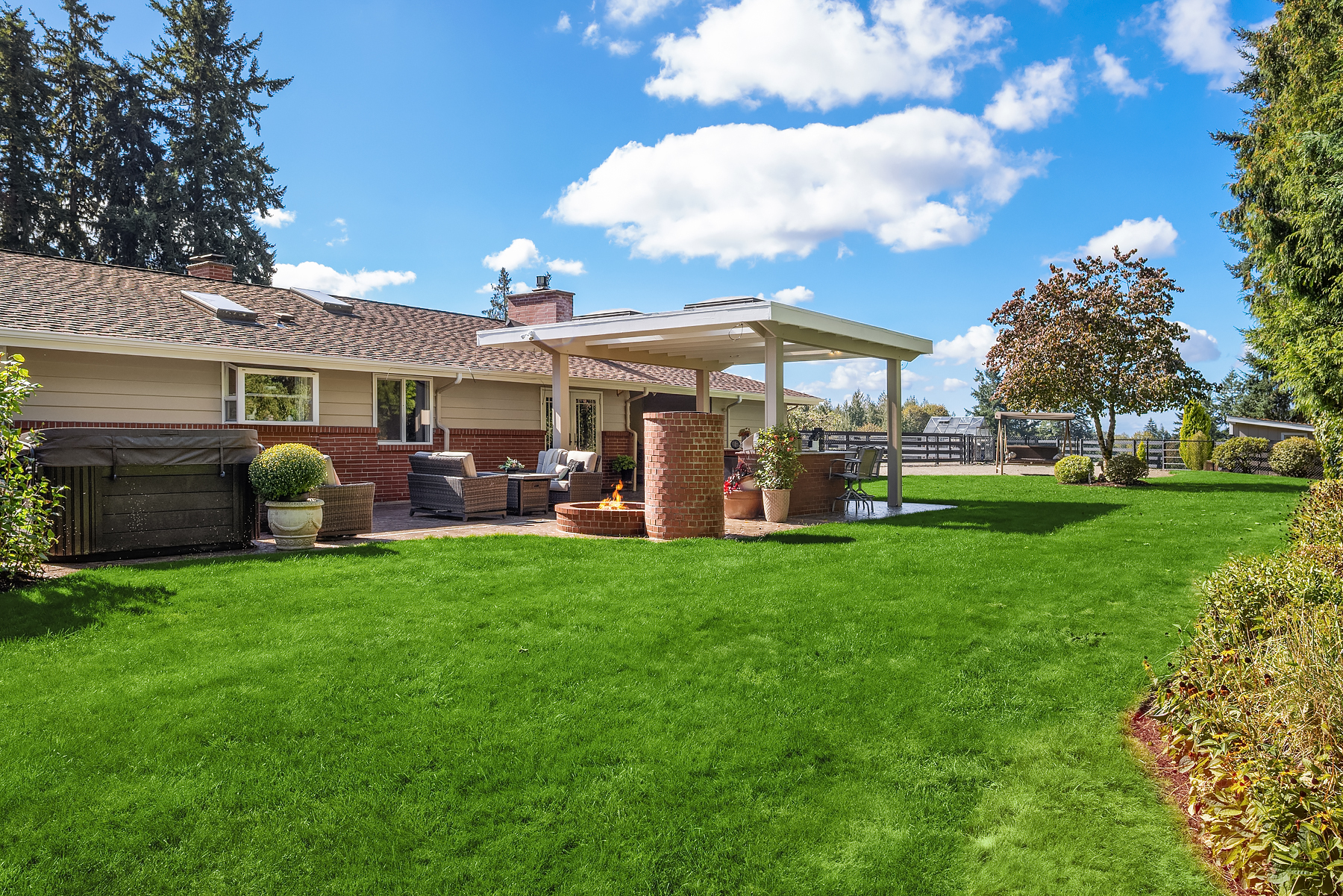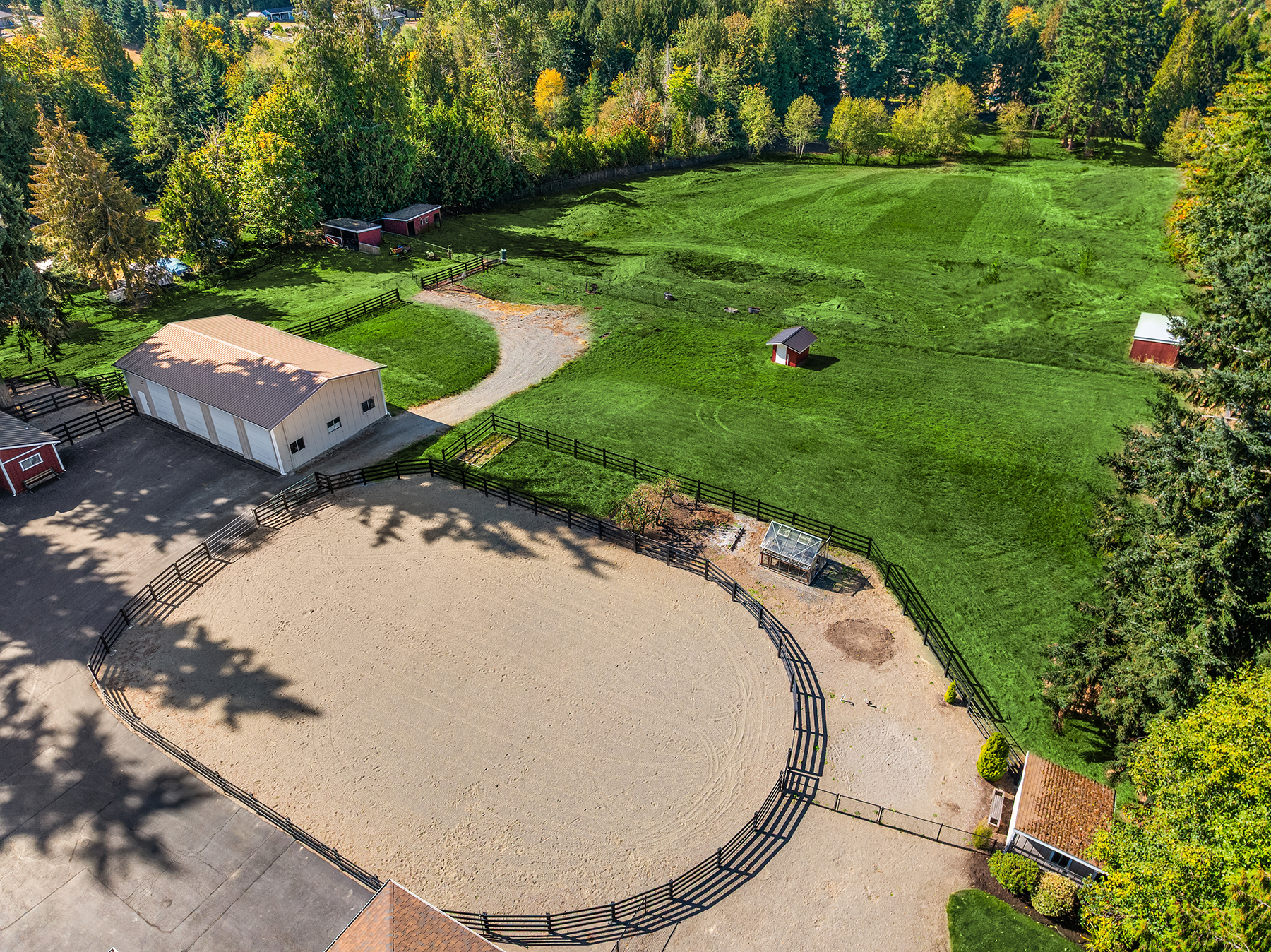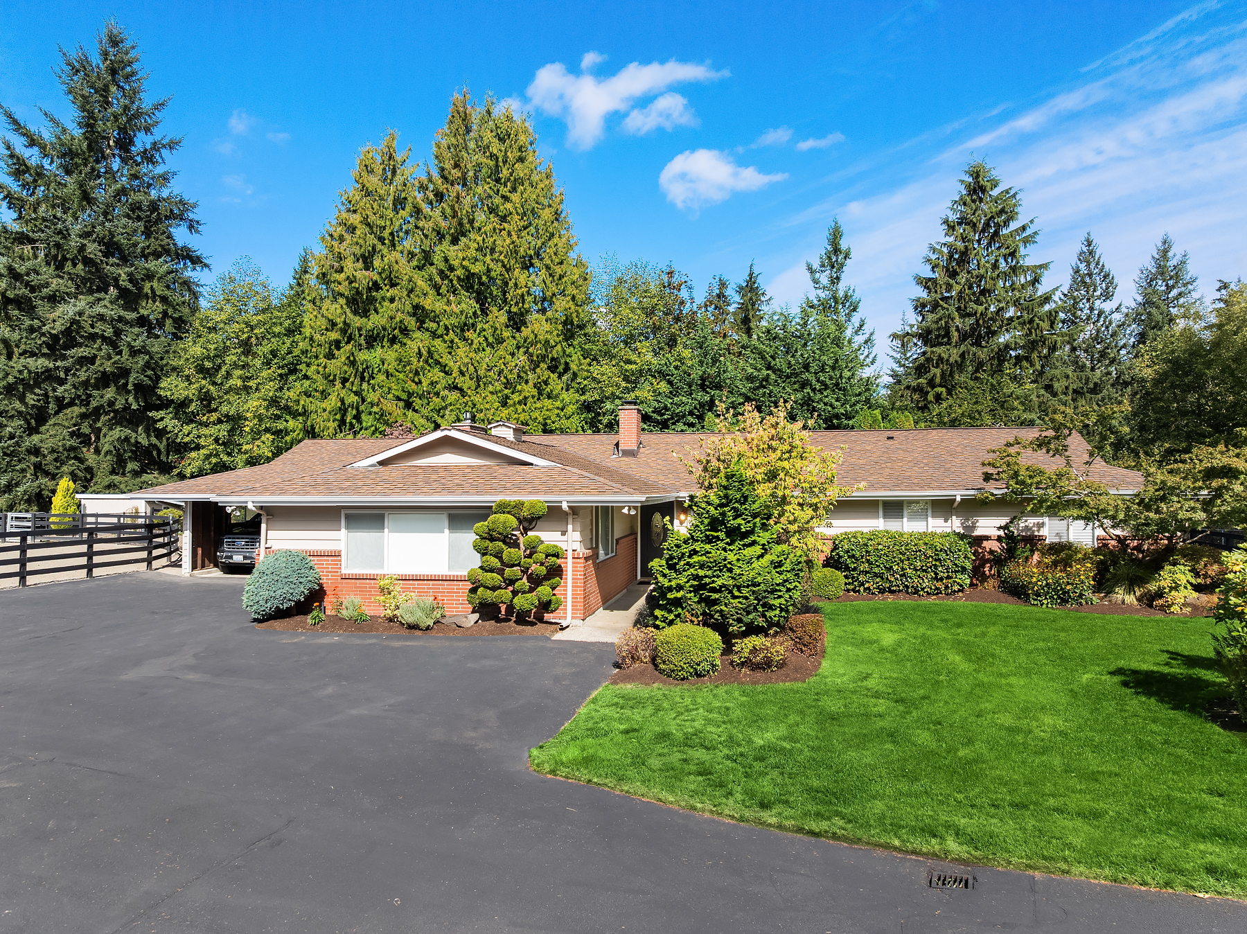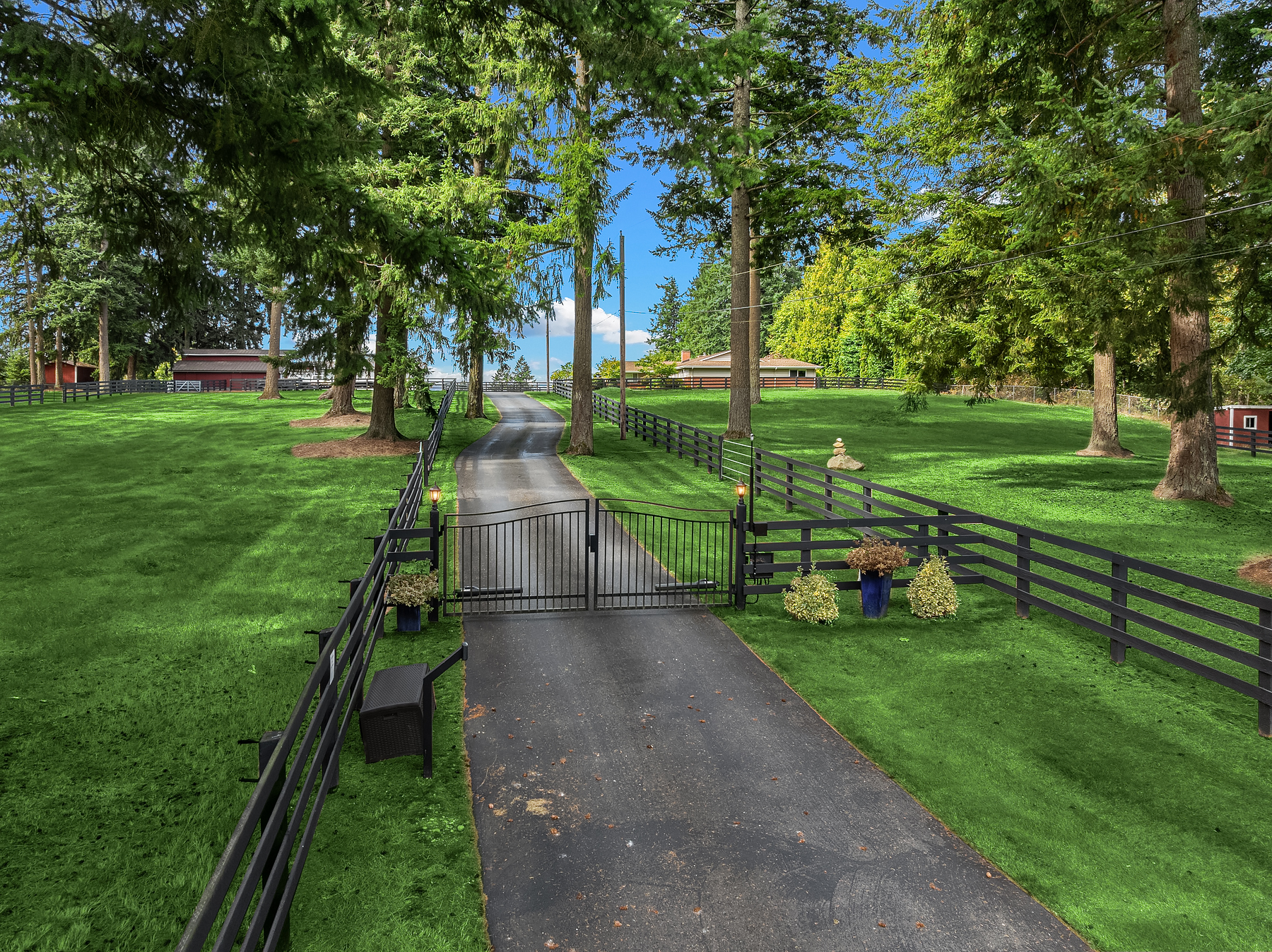 Presco Farms, first time available in 30 years, this exceptional equestrian estate sits on nearly 10 pristine acres in an area of distinguished properties. Comprised of three tax parcels, the setting offers privacy and beauty, featuring a paved, gated, tree-lined drive and four-rail fenced pastures. The thoughtfully updated single-level home showcases a spacious great room design, an open kitchen, four bedrooms, and two fireplaces. Enjoy year-round entertaining with a covered outdoor living area complete with a full kitchen and slab countertops. The fully fenced backyard is perfect for relaxation, offering a hot tub and firepit. Additional features include two covered parking spaces and an expansive four-bay shop with a car lift and a full upper-level storage area. Equestrian amenities abound with a seven-stall barn, outdoor arena, paddocks, and multiple fenced pastures—providing ample space to ride, roam, and enjoy this truly one-of-a-kind estate.